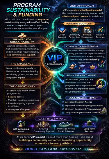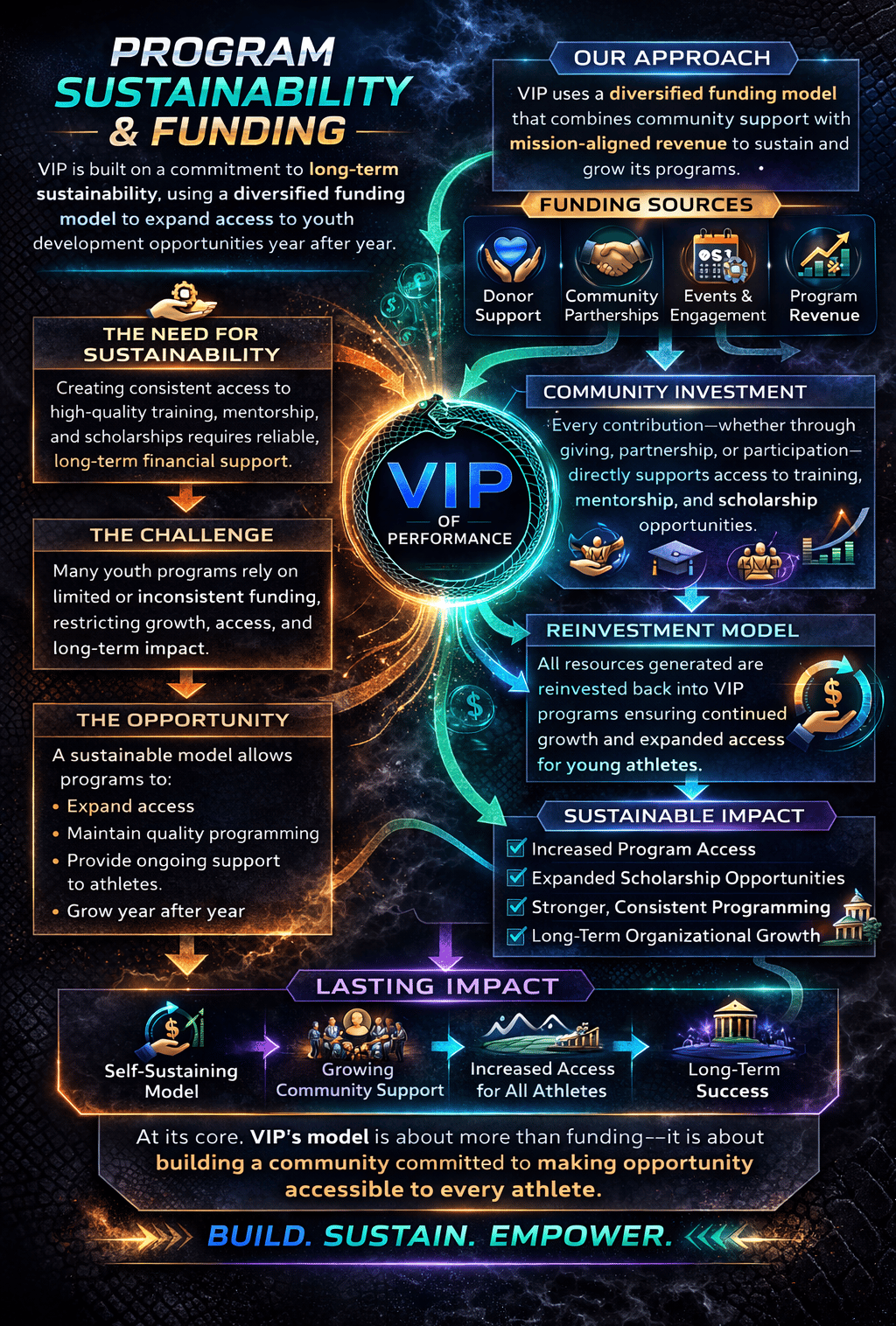 Every contribution—whether through time, resources, or partnership—helps create pathways for athletes to grow, succeed, and reach their full potential. Through strong community engagement, VIP continues to expand opportunities and build a lasting impact for the next generation.